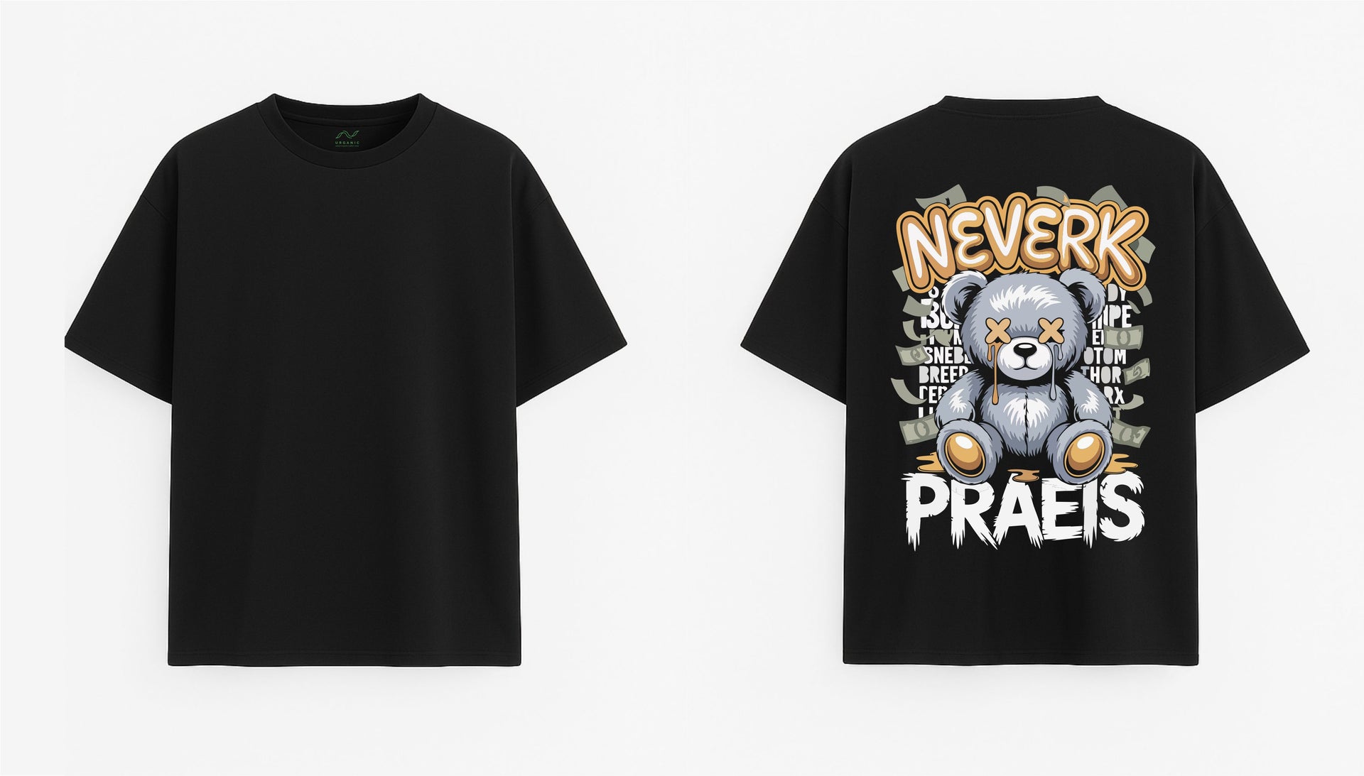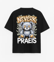 JUODI OVERSIZED MARŠKINĖLIAI "NEVERK, PRAEIS"