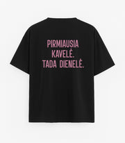 JUODI OVERSIZED MARŠKINĖLIAI "PIRMIAUSIA KAVELĖ"