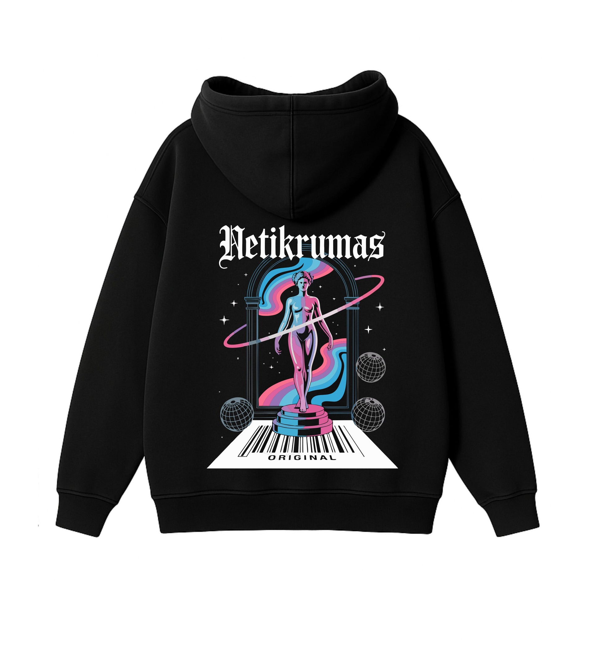 JUODAS OVERSIZED STOROS MEDŽIAGOS DŽEMPERIS "NETIKRUMAS"