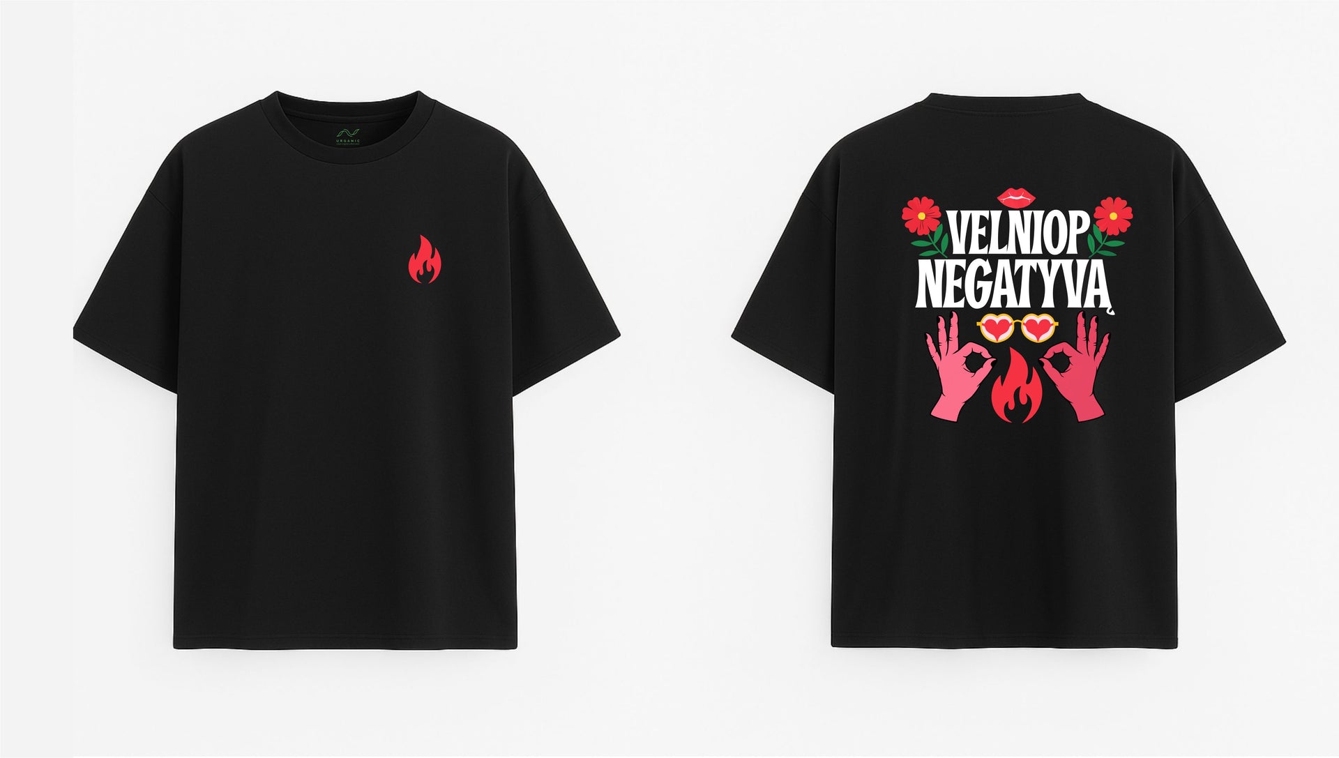 JUODI OVERSIZED MARŠKINĖLIAI "VELNIOP NEGATYVĄ"