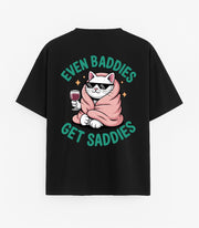 JUODI OVERSIZED MARŠKINĖLIAI "EVEN BADDIES GET SADDIES"
