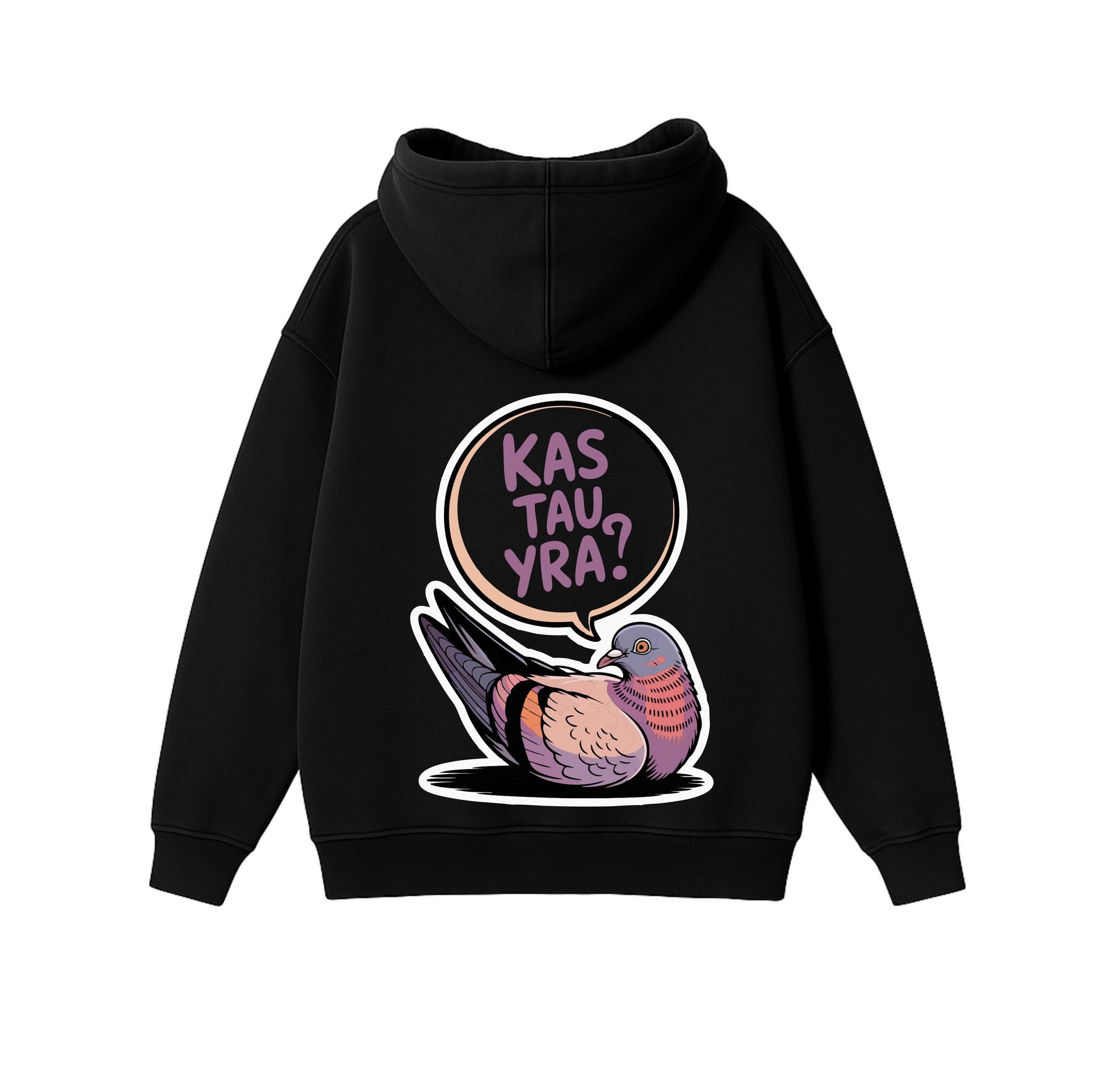 JUODAS OVERSIZED STOROS MEDŽIAGOS DŽEMPERIS "KAS TAU YRA?"