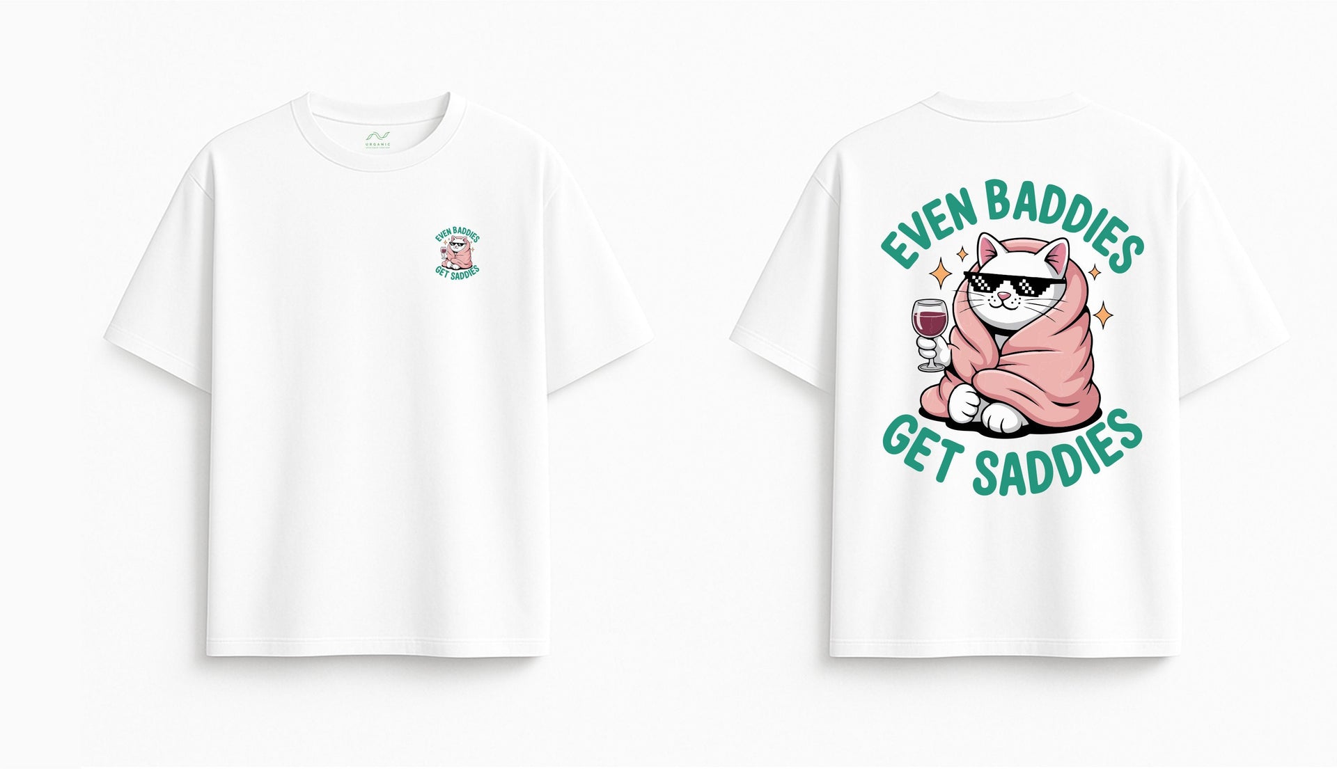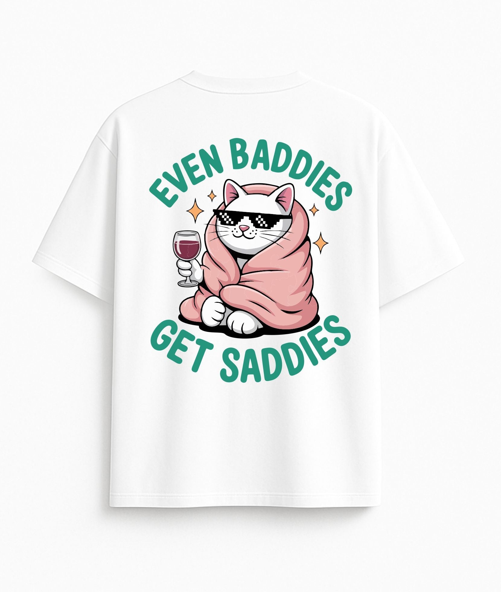 BALTI OVERSIZED MARŠKINĖLIAI "EVEN BADDIES GET SADDIES"