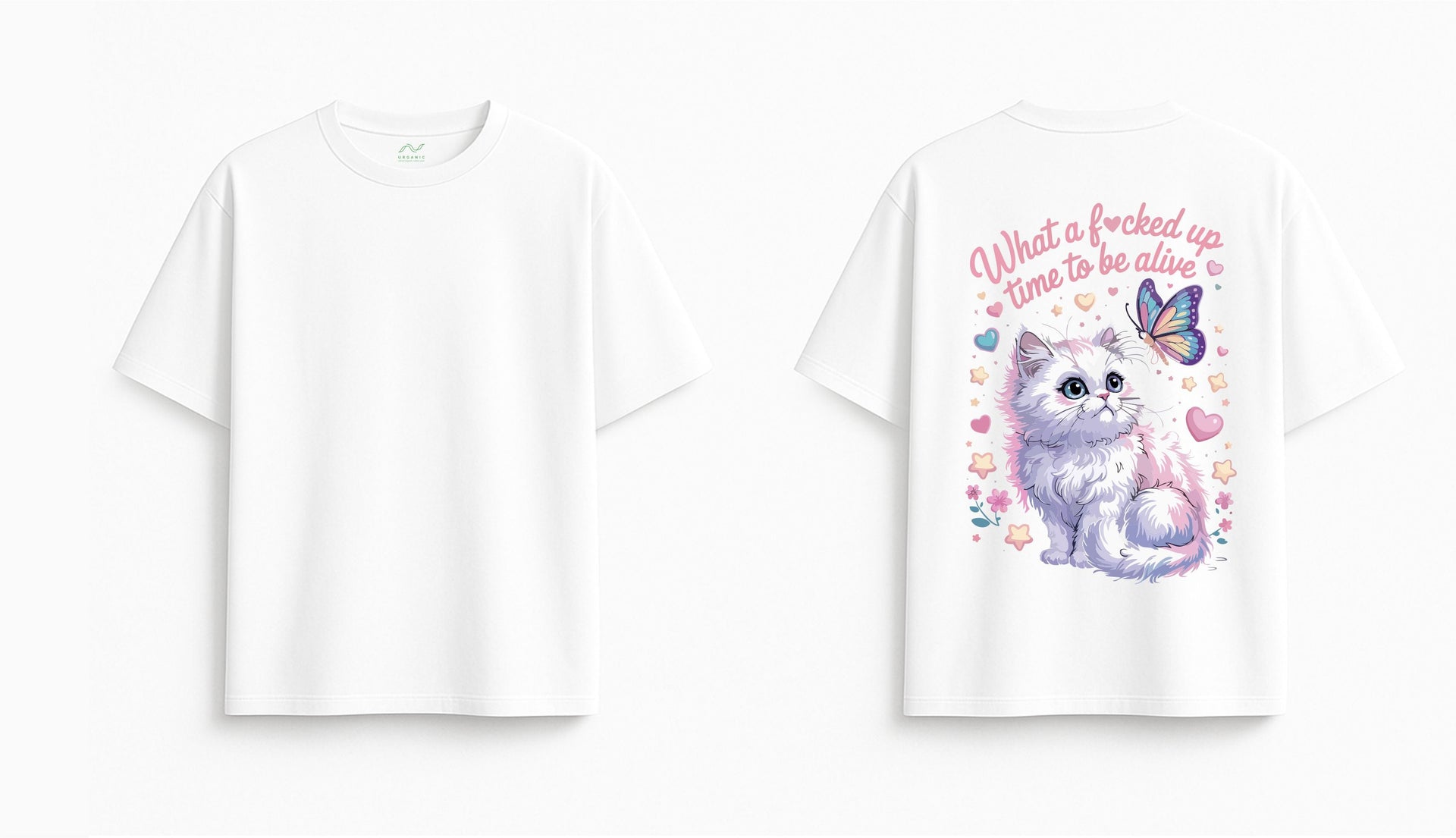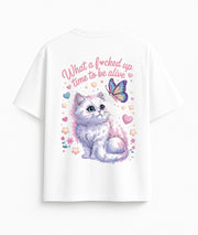 BALTI OVERSIZED MARŠKINĖLIAI "WHAT A TIME TO BE ALIVE"
