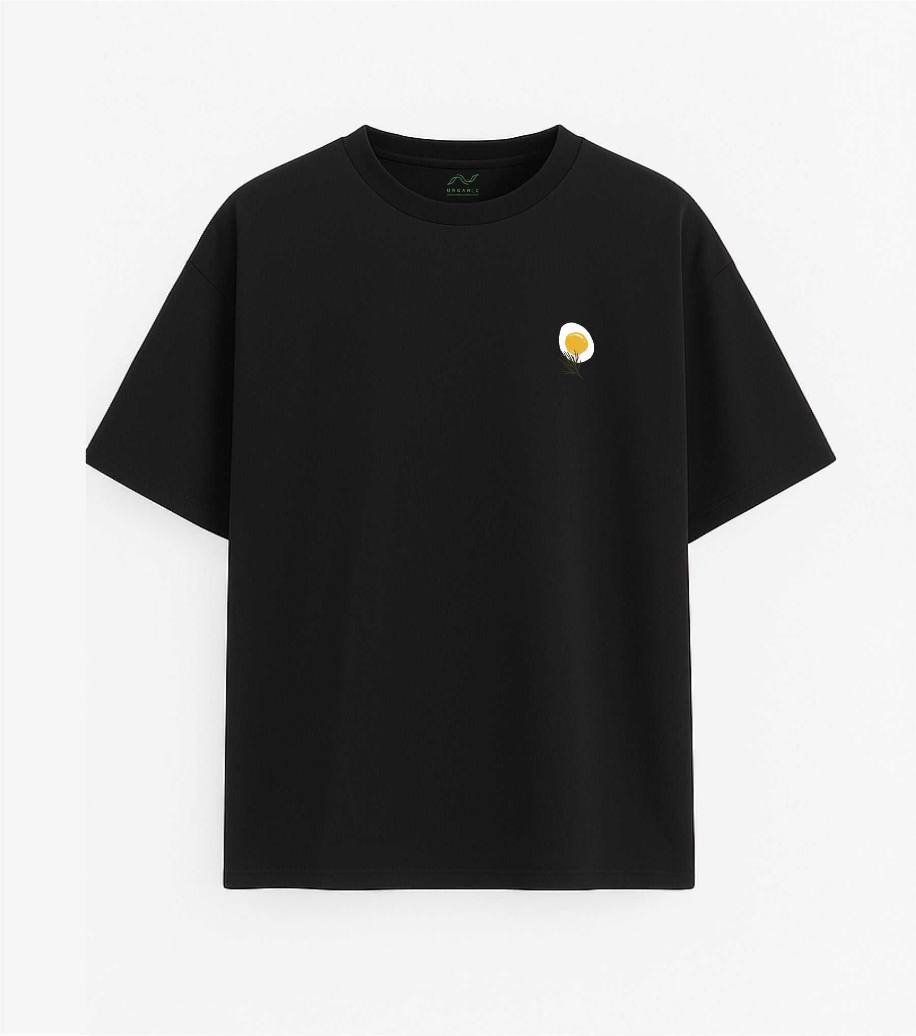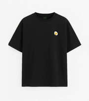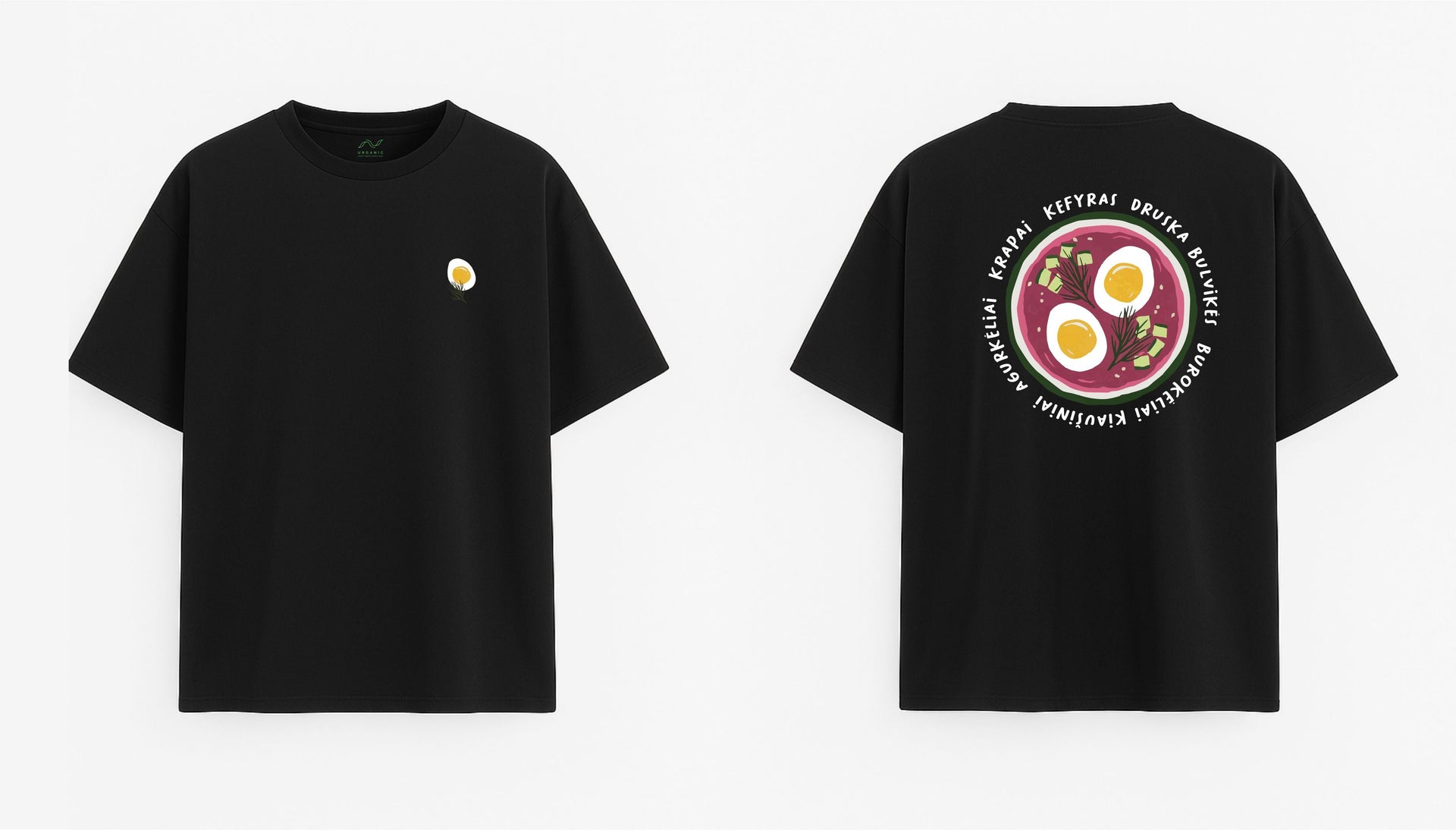 JUODI OVERSIZED MARŠKINĖLIAI "IŠ KO SUSIDEDA LAIMĖ"