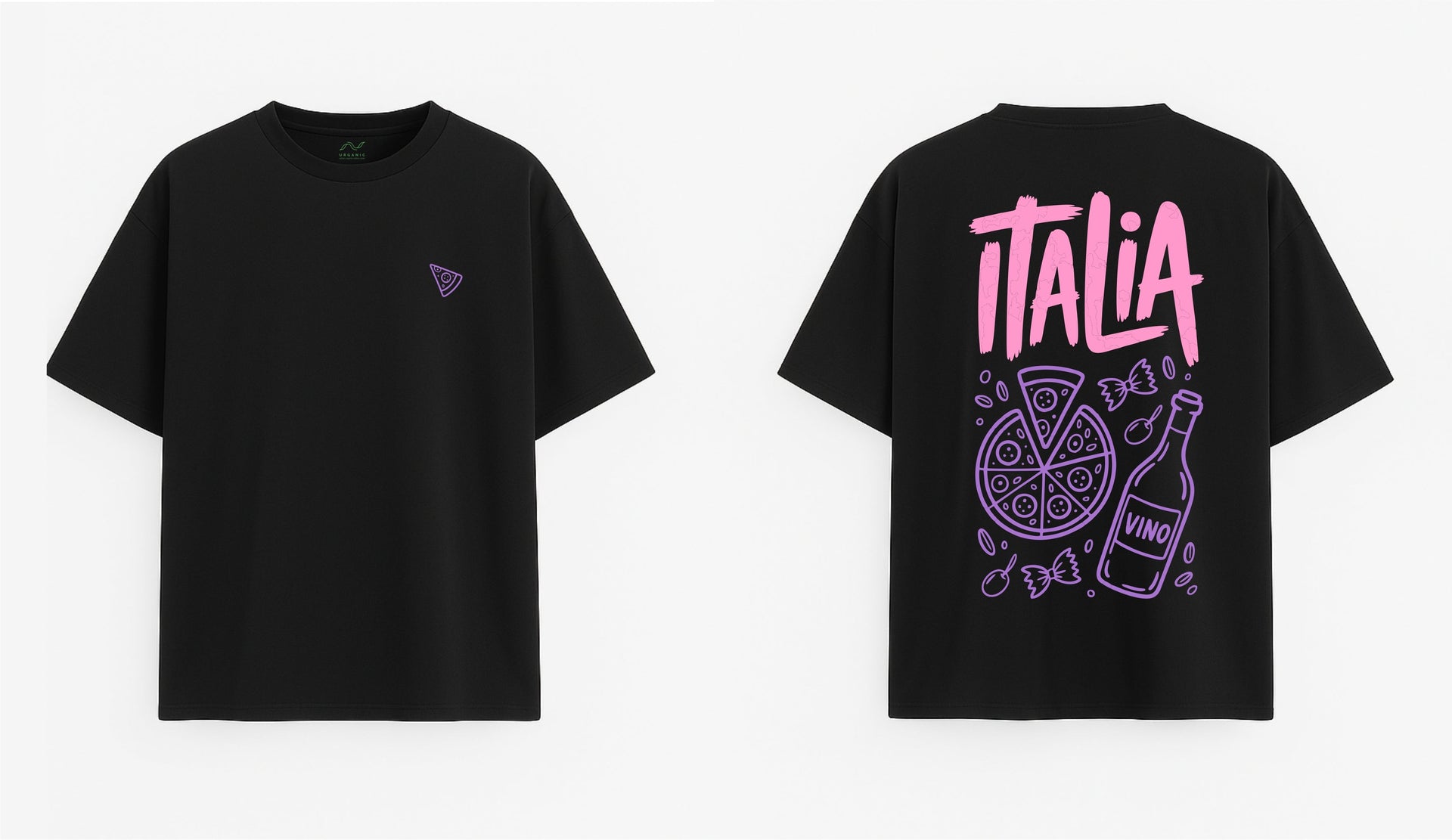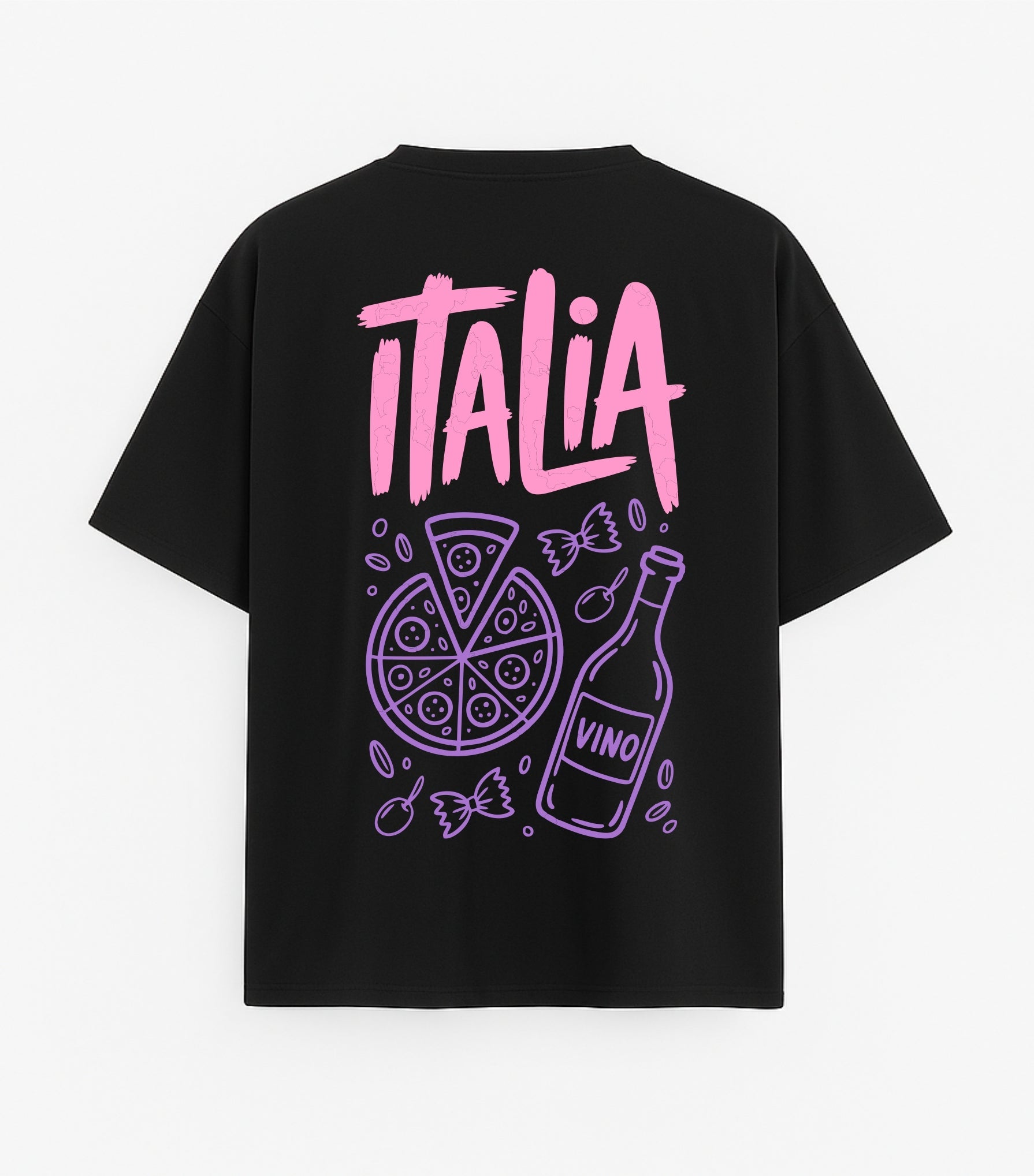 JUODI OVERSIZED MARŠKINĖLIAI "ITALIJOS SKONIAI"