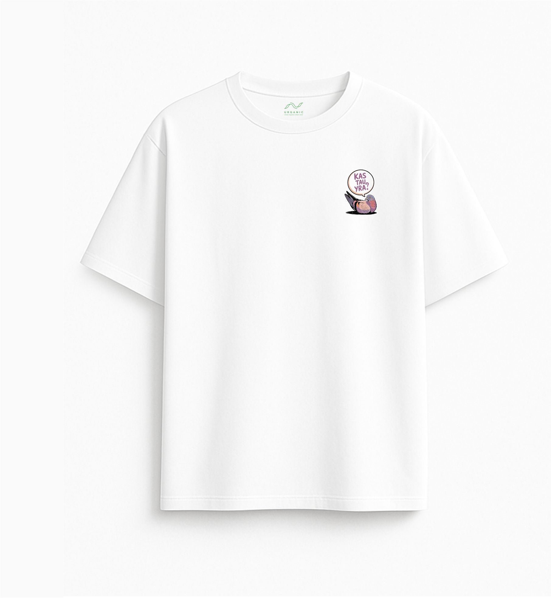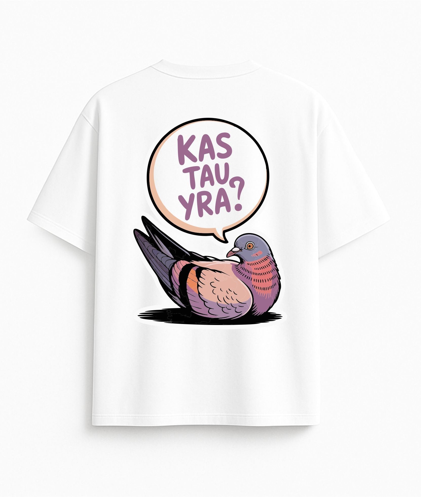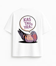 BALTI OVERSIZED MARŠKINĖLIAI "KAS TAU YRA?"