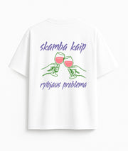 BALTI OVERSIZED MARŠKINĖLIAI "SKAMBA KAIP RYTOJAUS PROBLEMA"
