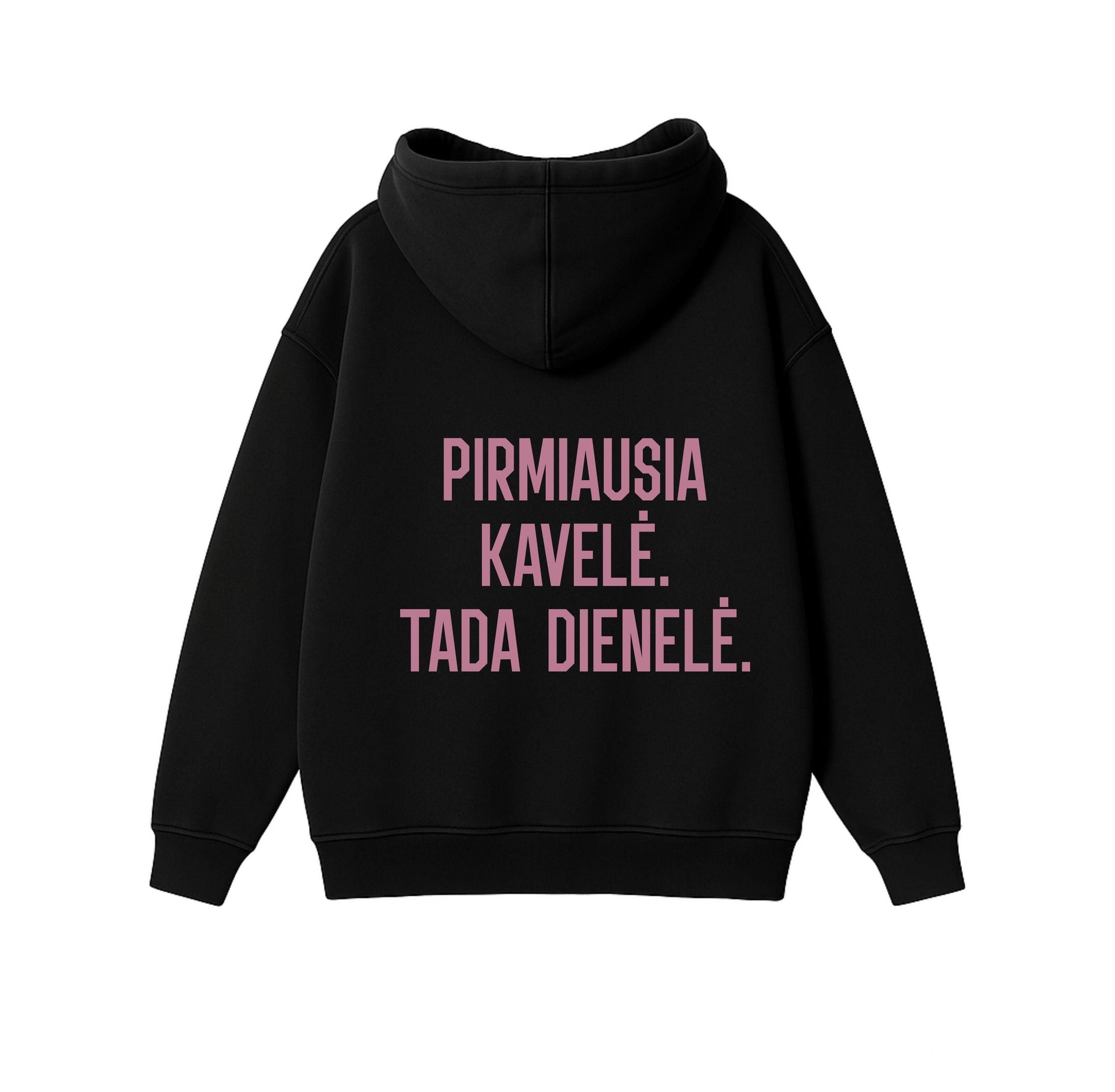 JUODAS OVERSIZED STOROS MEDŽIAGOS DŽEMPERIS "PIRMIAUSIA KAVELĖ"