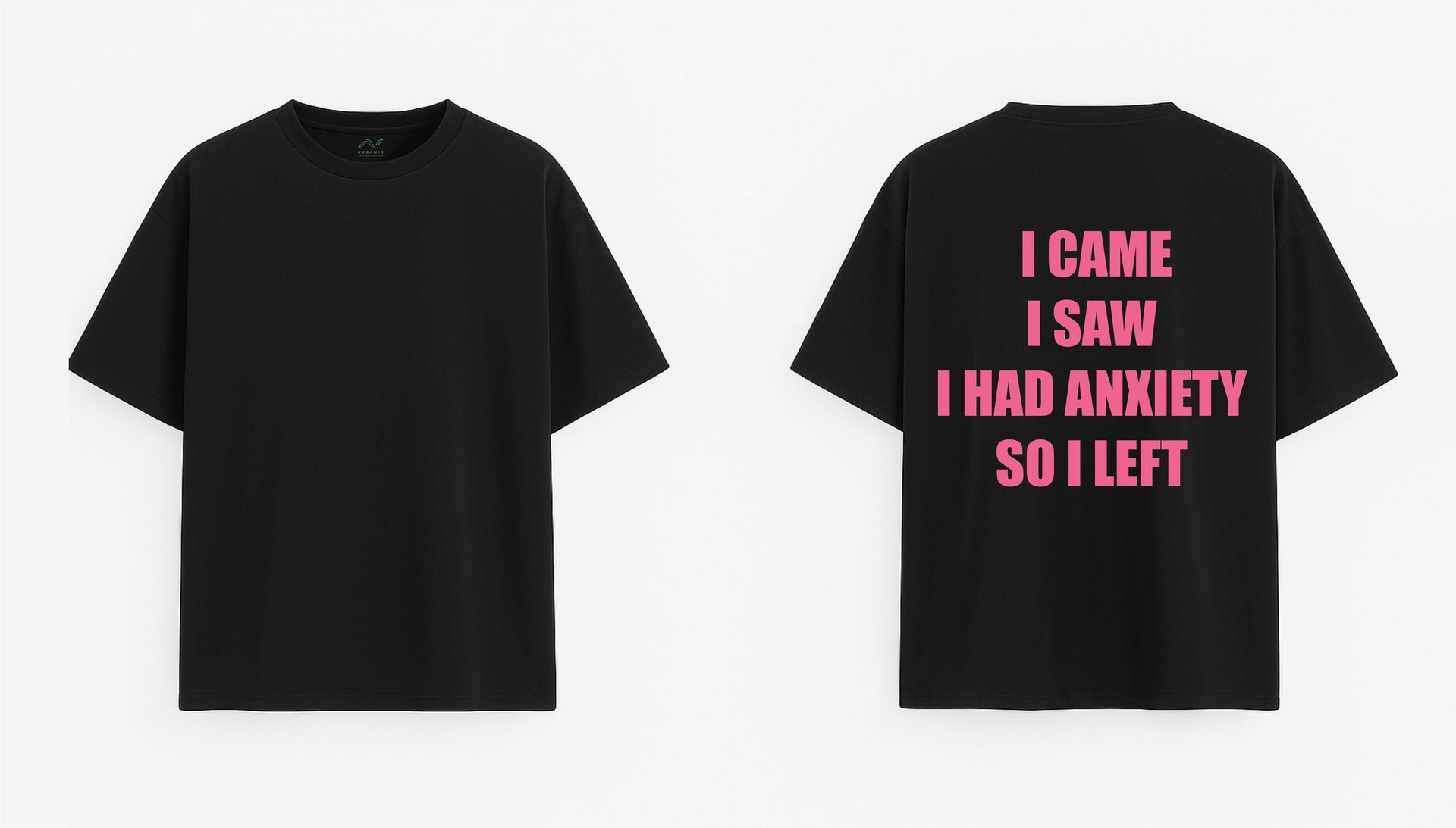 JUODI OVERSIZED MARŠKINĖLIAI "ANXIETY"