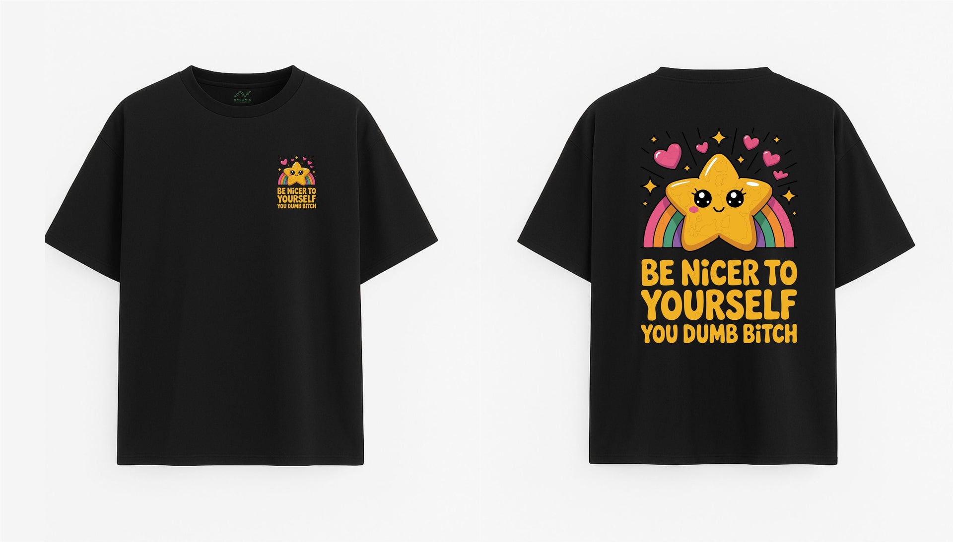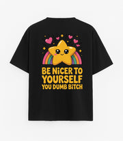 JUODI OVERSIZED MARŠKINĖLIAI "BE NICER TO YOURSELF"