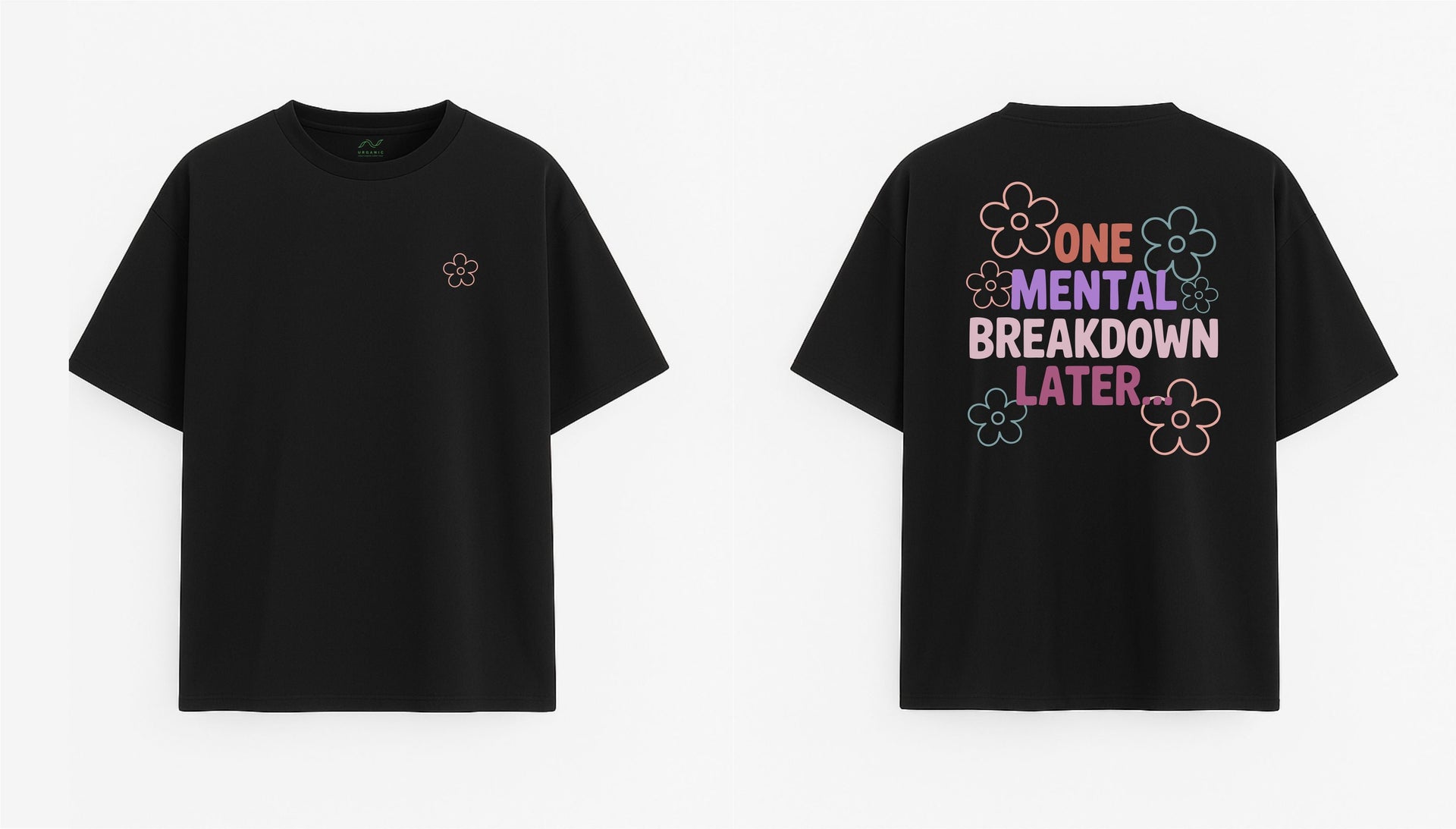 JUODI OVERSIZED MARŠKINĖLIAI "MENTAL BREAKDOWN"