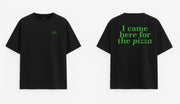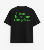 Oversized black T-shirt "I came here for the pizza"